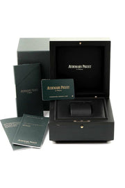 Black ceramic case, glareproofed sapphire crystal and black ceramic caseback, screw-locked crown. Sapphire dial, smoked external zone of the counters, pink gold applied hour-markers and Royal Oak hands with luminescent coating, black inner bezel. Black ceramic bracelet with titanium AP folding clasp. Powered by the natural movements of your wrist.